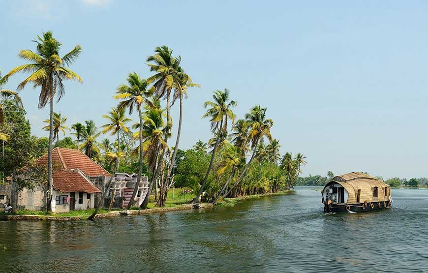 Explore the vibrant port city of Cochin, relax at the cliffside beaches of Varkala, and enjoy a serene houseboat cruise through the backwaters of Alappuzha. Discover wildlife at Thekkady, wander through the misty tea gardens of Munnar, and seek blessings at the sacred temple town of Guruvayur for a perfect Kerala getaway.